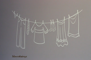 So here’s my clothesline! It literally makes me smile every time I walk into the room, and considering I am in there to do chores, it is a wonderful thing! Anything that makes doing laundry fun is a good thing! I wanted to show you a picture of the whole room but with the room being long and skinny, I can’t get a good shot in of this wall, but you can see how creative and cute it is just by seeing this picture.