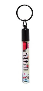 Balmshell packaging has a little sumthin’ sumthin’ for ya! Remember those nostalgic floating pens you used to see around? the kind with liquid inside that allowed a picture to move from one side to the other when it was tipped? That’s the idea behind the caps to the Balmshell gloss! Each shade is packaged in a unique tube that contains a floating illustration. Each illustration has a cute story line that can relate to every woman matches with the name of the gloss. When you are finished with the gloss you can unscrew the illustration and attach it to a complimentary keychain component allowing you to keep the artwork.