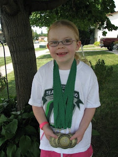 Ryley with her 4 gold medals from the Canadian Transplant Games last summer in Quebec