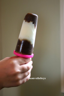 We use our popsicle molds all year round, I’ve posted about our most frequent way to use them before with yogurt (here), but in the summer we try to have a little fun and I make the boys Oreo Pudding Pops. It actually has nothing to do with the cookie, the name gives props to. It’s just the chocolate, vanilla, chocolate layering that looks like the famous oreo cookie. They are a big hit with the boys at our house and make a nice cool treat on a hot summer’s day.