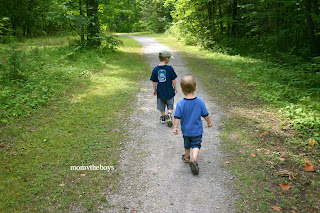 The Boys did great. We only had to carry Little Buddy over a few really rough spots and we did leave with a scrapped knee or two but it was a good day. We started out hike over a huge bridge over water! Walked along a trail beside loud rushing water, then took the forest route back and before we left we caught a boat ready to head through the locks so we gave the boys a little lesson on ‘boat elevators’ lol or how locks work! lol
