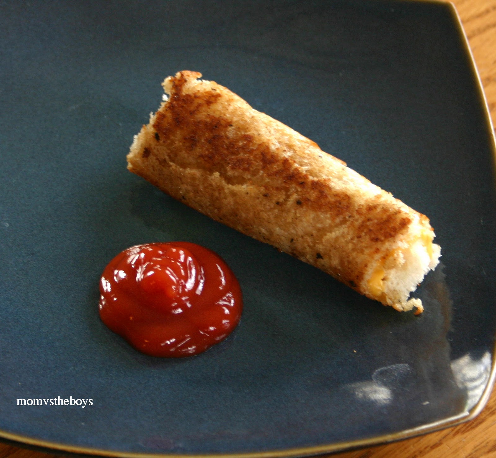 I saw something like this on Pinterest and almost passed it by, because honestly it didn’t ‘look’ that appealing. But my kiddos are huge grilled cheese fans so I checked it out and realized my boys would love this! We roll a lot of food around here, cheese wraps, pb wraps, meat rolls etc whatever gets the kids to eat, so combining grilled cheese with a roll form was a natural fit around here. And as expected the kids gobbled them up!