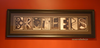 You can choose to create a custom frame with a word of your choice up to 9 letters. This is a perfect way to proudly display your last name or a word meaningful to your family. In the Mom vs. the Boys household we celebrate boys and have the word BROTHERS on our wall. The frame is a gorgeous dark brown wood and compliments the sepia tone of the photographs. With over 500 different letter photos to choose from, you are able to completely customize your art and will have a one of a kind piece to display in your home.